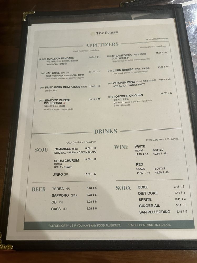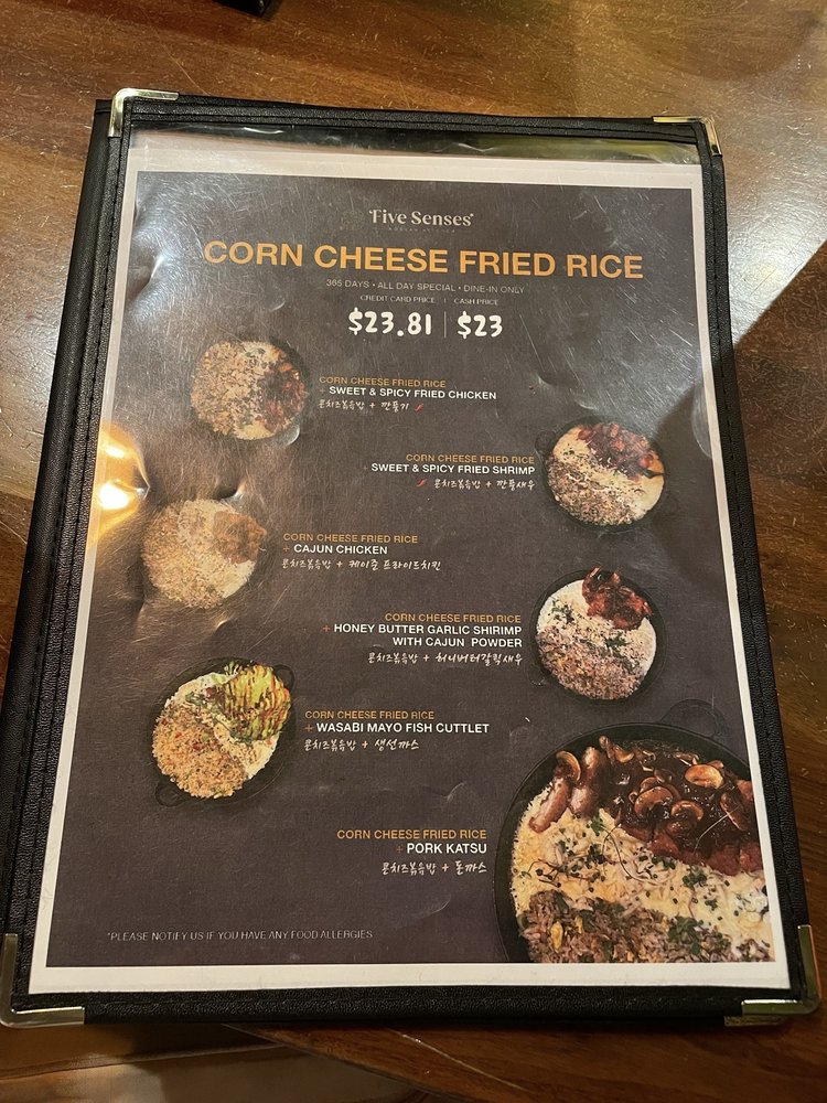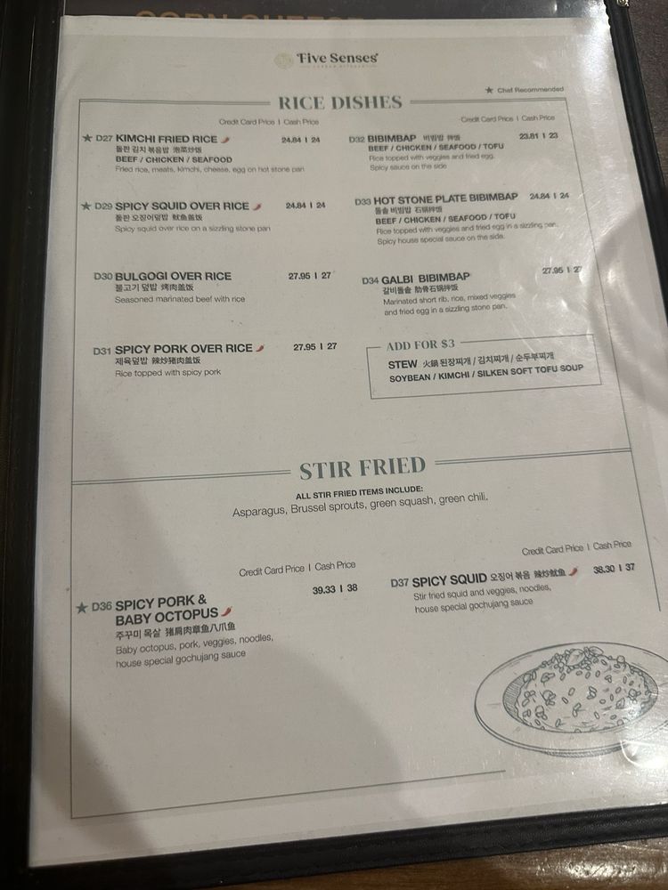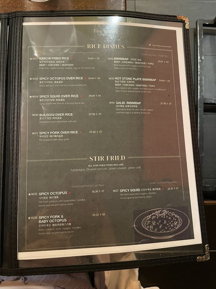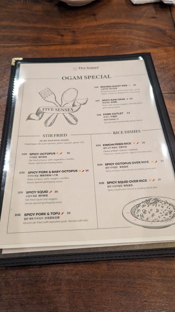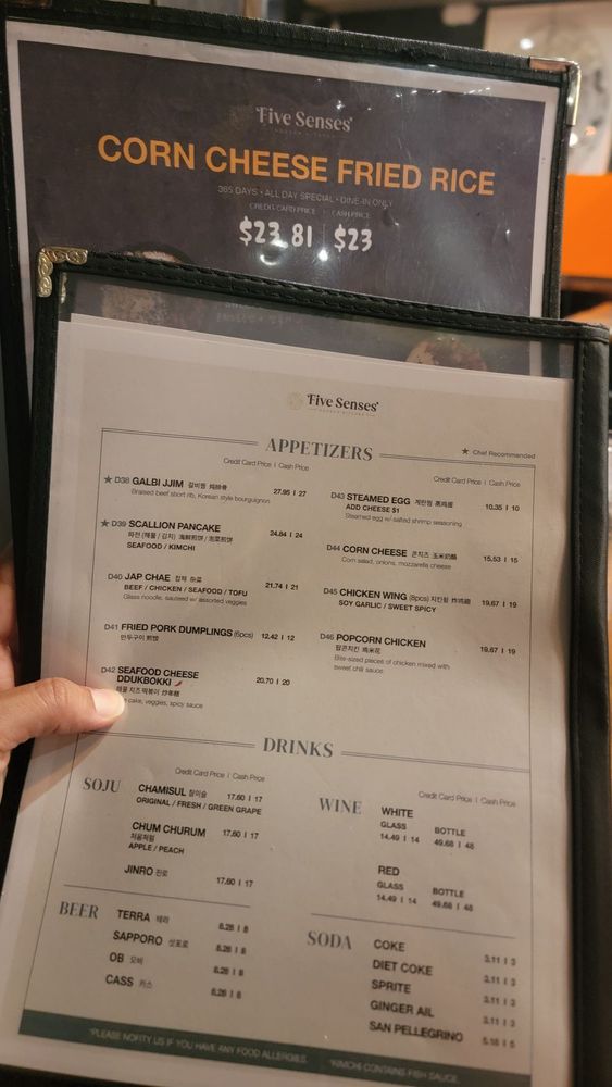 Five Senses, located at 9 W 32nd St New York, NY 10001, offers a diverse menu catering to various preferences. From Korean cheese corn to kimchi fried rice, customers rave about the flavorful dishes and generous portion sizes. The restaurant's modern decor and efficient service create a welcoming atmosphere for diners. Customers appreciate the quick seating and friendly staff, making dining experiences enjoyable. With options for vegetarian and seafood lovers, Five Senses ensures there is something for everyone. The inclusion of amenities like Wi-Fi, outdoor seating, and delivery services adds to the convenience factor. Whether you're craving Korean fried chicken or seafood kimchi fried rice, Five Senses provides a satisfying culinary experience for all.